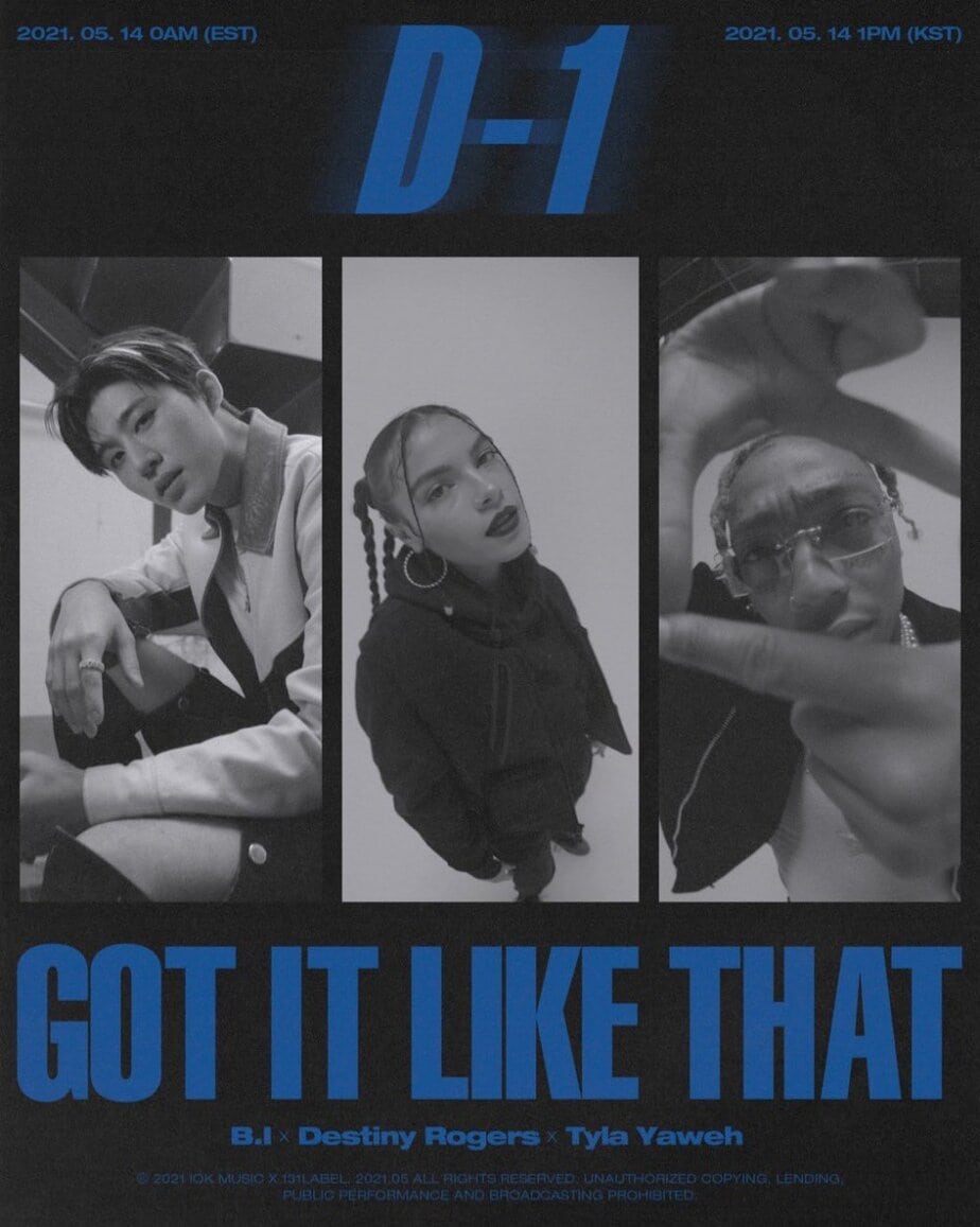 Daha önce B.I, yaklaşan global teklisi “Got It Like That” için beklenmedik bir teaser videosu paylaşıp ardından bir teaser afişi yayınladı.