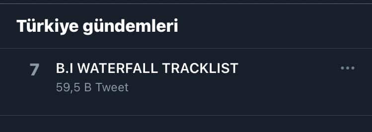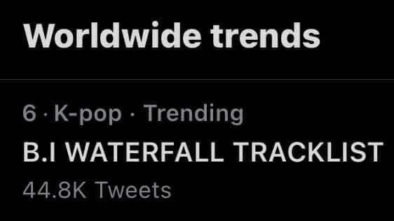Parça listenin yayınlanmasının ardından “B.I WATERFALL TRACKLIST” Türkiye de dahil olmak üzere pek çok ülkenin Twitter trendlerine girdi. Dünya gündeminde 6. sıraya kadar yükselirken Türkiye‘de 7. sıraya girdi.