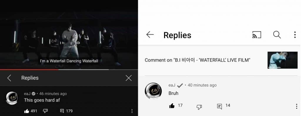 Jae aynı zamanda YouTube’da “Waterfall”ın canlı filmine ve dans performans videosuna da “Abii” ve “Bu deli gibi çok iyi” şeklinde yorumlar bıraktı.