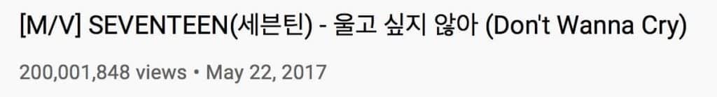 24 Mayıs itibariyle Seventeen’in “Don’t Wanna Cry” müzik videosu 200 milyon izlenmeyi geride bıraktı ve bu grubun 200 milyon izlenen ilk müzik videosu oldu