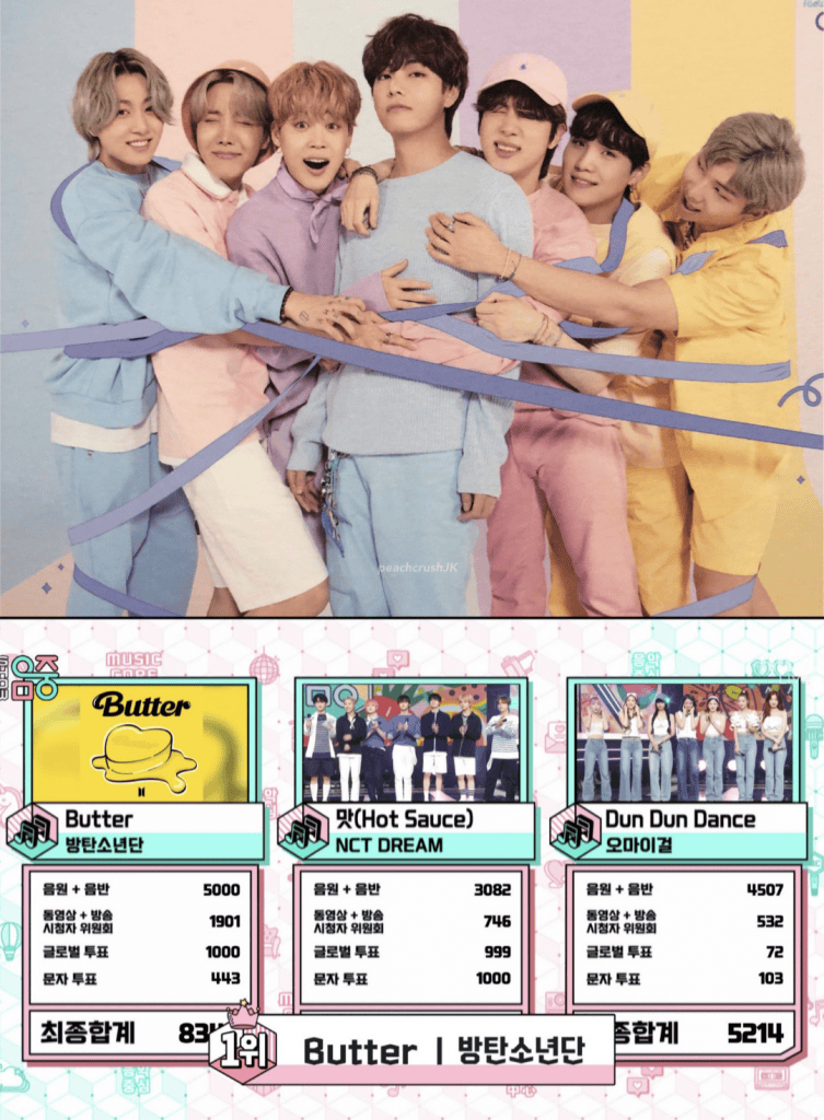 BTS, 8,344 puanla galibiyeti evine götürdü ve bunu “Butter” için ilk galibiyetleri yaptı.