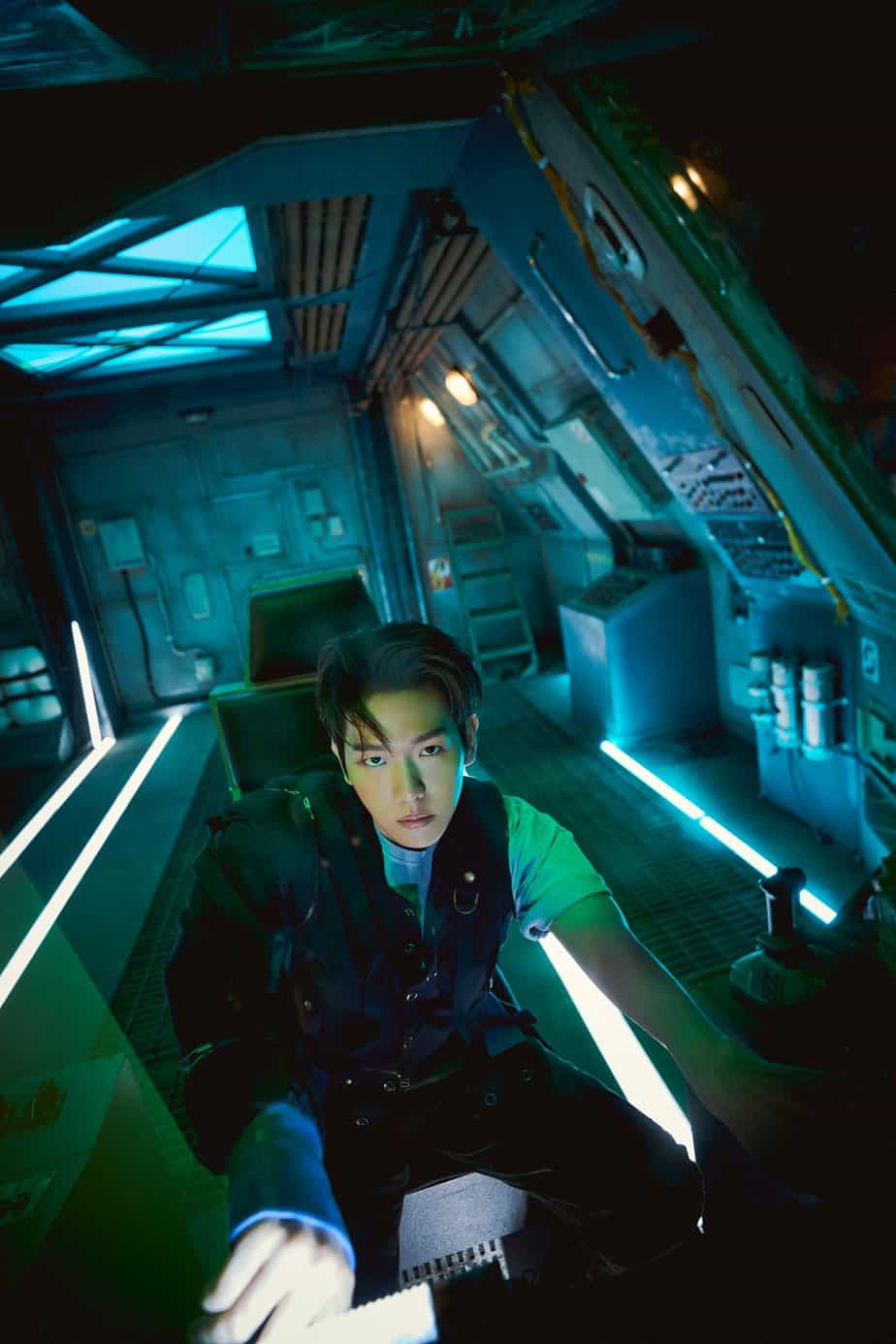 Baekhyun uzay gemisini kontrol ediyormuş gibi görünüyor.