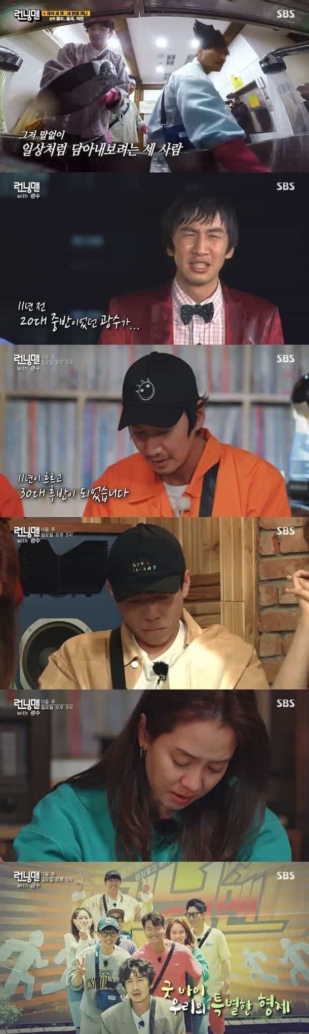 Running Man‘in 6 Haziranda yayımlanan bölümünün sonunda, gelecek haftanın bölümünden bir tanıtım paylaşıldı. 13 Haziranda yayımlanacak olan bölümün tanıtımda, Lee Kwang Soo ile olan son bölüm olduğu için ekip üyelerinin ağladığı görüldü.