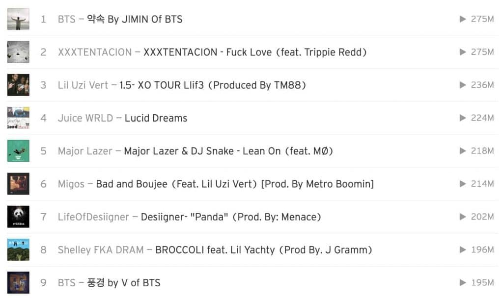 Ve tarih 11 Haziran 2021‘i gösterdiğinde, Jimin‘in “Promise” şarkısı 275 milyon dinlenmeyi aşarak, SoundCloud tarihinde platform üzerinde en çok dinlenen şarkı olarak rekor kırdı!