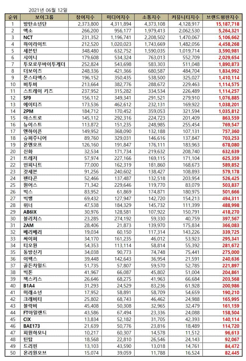 Kore İş Araştırma Enstitüsü, erkek idol grupları için bu ayın marka itibarı sıralamasını açıkladı!