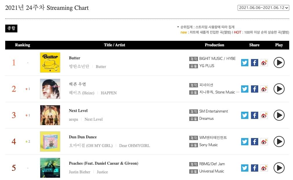 Gaon Chart, 6 Haziran – 12 Haziran haftası için liste sıralamasını açıkladı!
