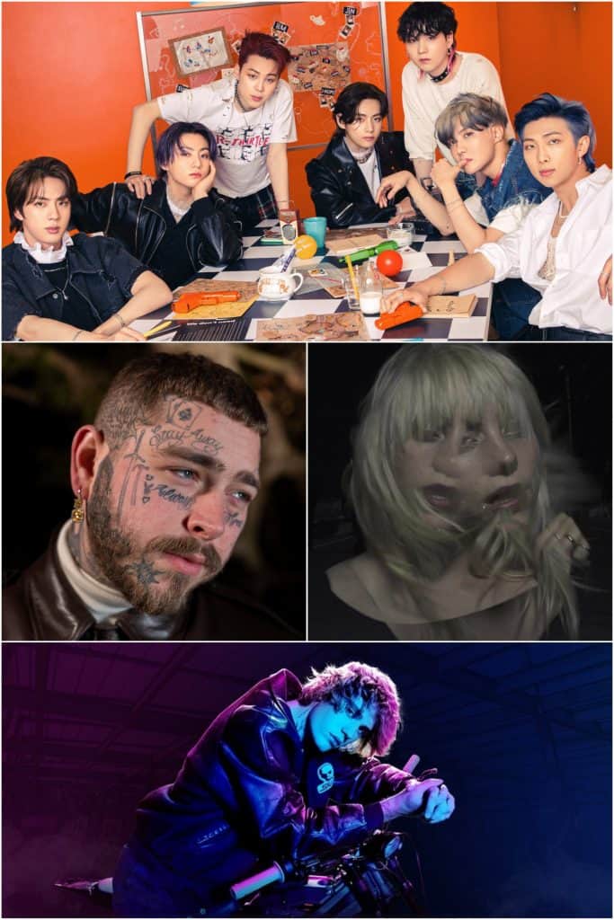 BTS, Post Malone, Billie Eilish, Justin Bieber