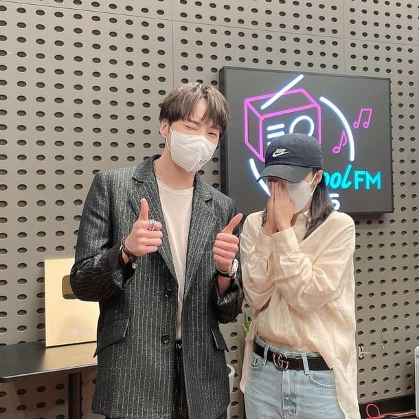 ‘Jung Eunji Music Plaza‘ Instagram hesabı üzerinden aşağıdaki fotoğrafları ve “Gerçek arkadaşım. Arkadaşım takılmaya geldi. Vay canına, o gerçekten burada! Ünlü bir arkadaş burada!” mesajıyla paylaştı. Radyo programında Kang Seung Yoon, “İki gün önce çok şok edici bir makale gördüm ve tartışmaya geldim. Ünlü arkadaşın olmadığını söyledin.” dedi.
