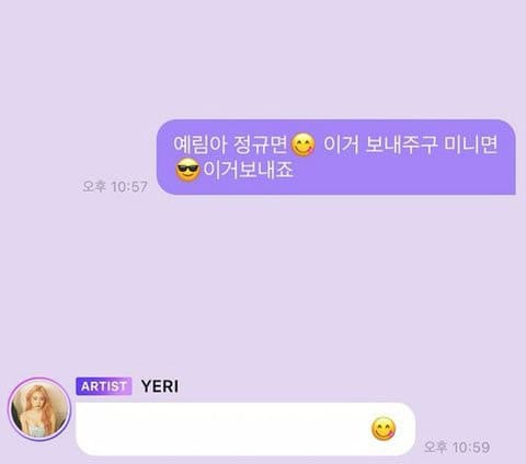“Yerim-ah, eğer tam albüm gelecekse 😋 gönder, mini albümse 😎 gönder”