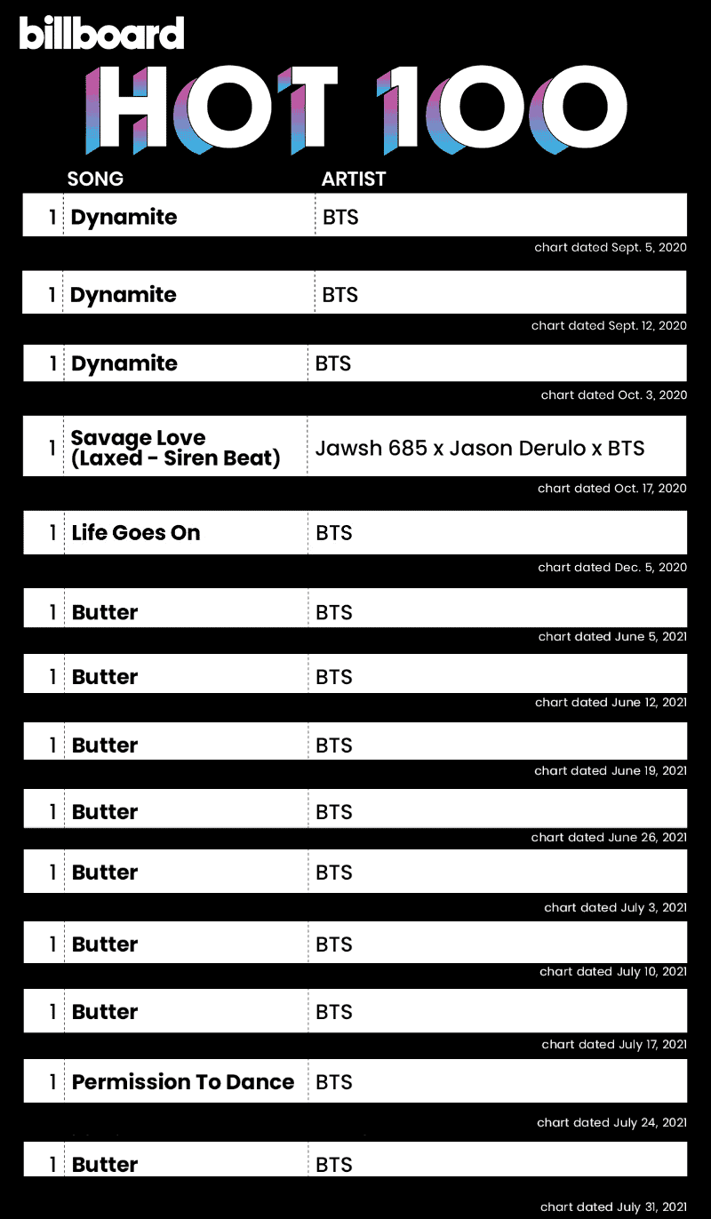 .@BTS_twt is the first act in history to replace themselves at #1 on the Hot 100 two weeks in a row.