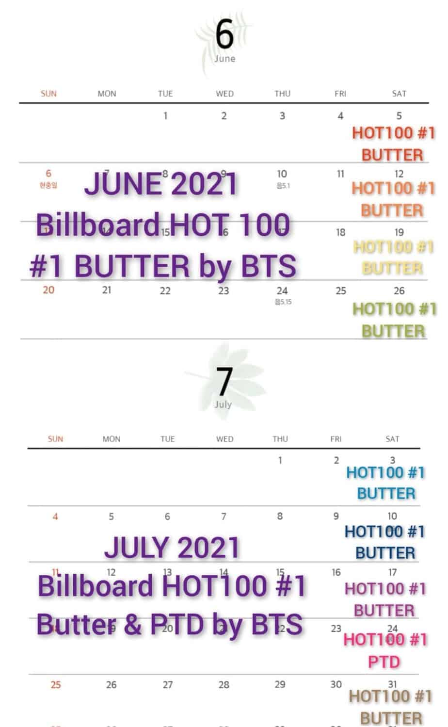 지난주 1위 #PermissiontoDance 에 이은 #BTS_Butter 의 1위! 핫백은 9주 내내 #방탄소년단 노래로 가득!💜#PermissiontoDance at no. 1 last week, now #BTS_Butter at no. 1! HOT 100 brimming with #BTS music for 9 straight weeks!💜#Got_ARMY_Behind_Us https://t.co/28AjklshKS
