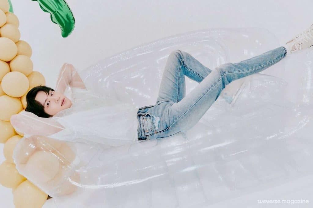 Jin: Umarım hayranlarımız kahkahalarını kaybetmezler. Bu tür şeyleri söylemekte pek iyi değilim. Benim kişiliğimde yok. Böyle konuştuğumda utanıyor ve ürkek hissediyorum ve kendimi ciddiye alamıyorum. Bu yüzden bunu minimumda tutmaya çalışıyorum. Ama hayranlar bizi hobi olarak izliyor, biliyor musun? Hobiler tamamen eğlenmek ve gülebilmekle ilgilidir. Bu yüzden onları mutlu görmek istiyorum, bitkin değil. Onları daha mutlu etmek için Weverse’de komik gönderiler paylaşmak veya komik cevaplar bırakmak için yolumdan çıkıyorum. Umarım beni seven herkes mutlu olur ve kötü bir şey görmelerini istemiyorum.
