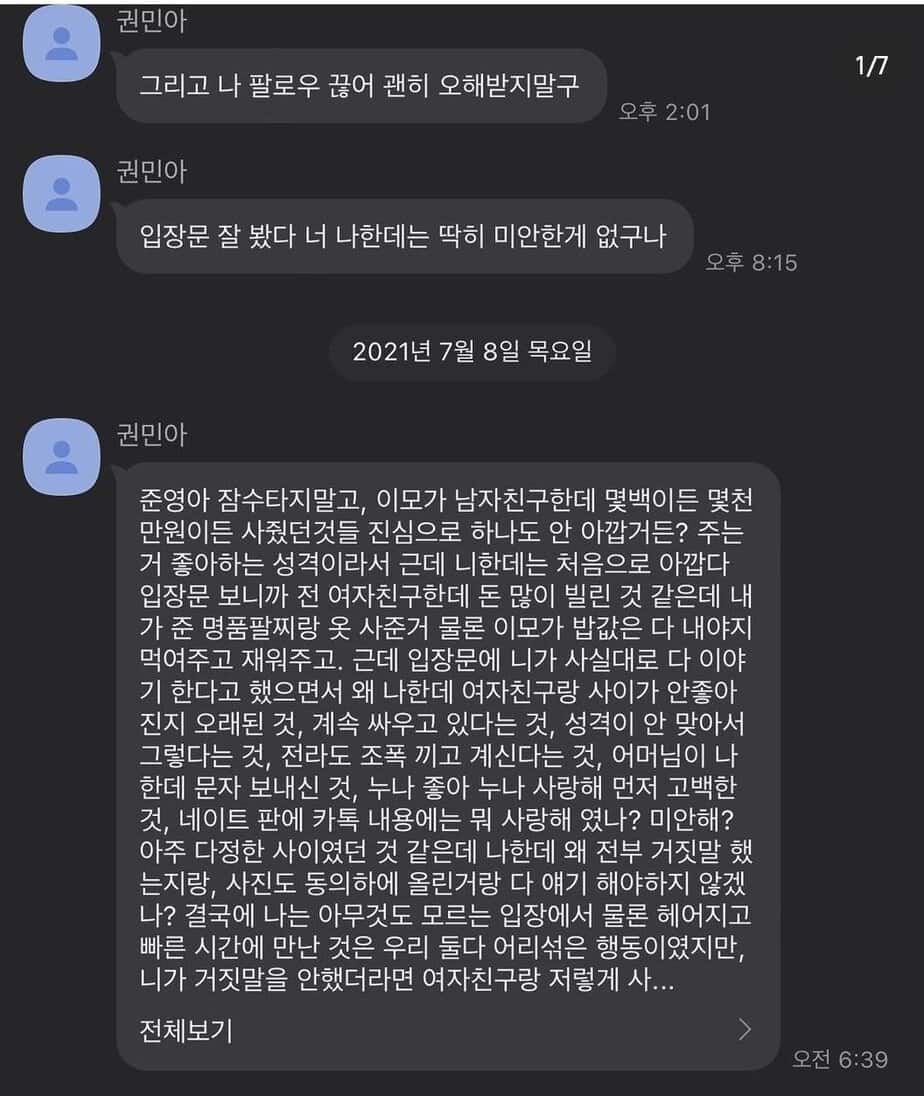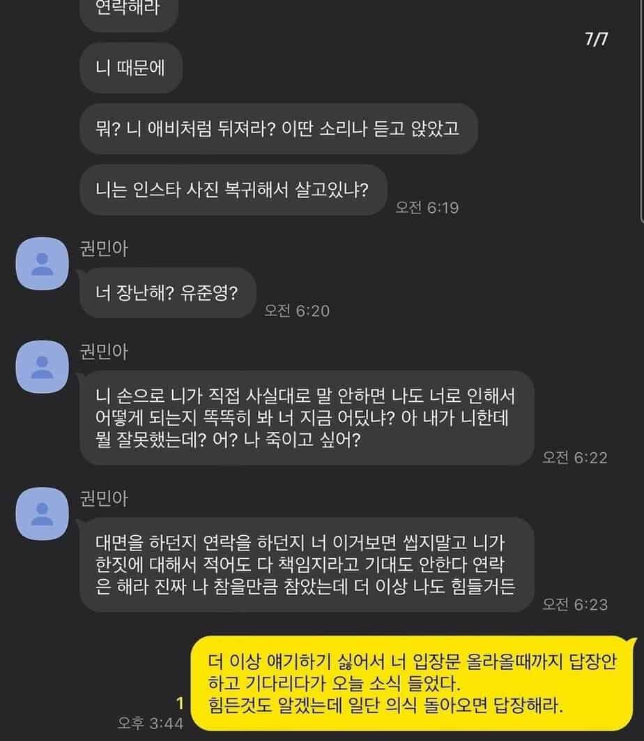 9. [+130, -1] Annesi Kwon Mina’nın eski erkek arkadaşına 20 tane fotoğraf gönderirken ne düşünüyordu acaba? Suçluluk hissetmesini mi istiyordu ancak tüm suç eski erkek arkadaşında mı?