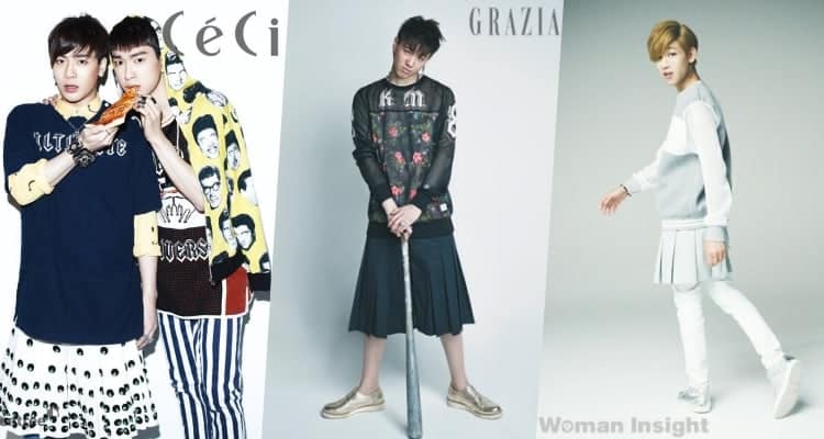 Özellikle son yıllarda modanın sınırlarını kıyafetlerin cinsiyetinin olmadığını göstermek için son derece zorluyorlar. Bu amaçla trend haline getirdikleri moda akımı etek giyinen erkek idoller. Aslında erkek gruplarının birçoğu eğlenceli performansları için kadın idoller gibi görünmek amacıyla kılık değiştirmiş olsalar da pek azı etek giyindi.