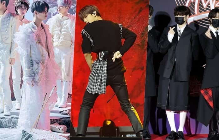 TXT etek giyme konusunda tereddüt etmeyen bir grup. Öyle ki grup üyeleri farklı ortam ve zamanlarda etek giymeyi tercih ederek moda ikonu olma konusundaki iddialarını da göstermiş oldular.