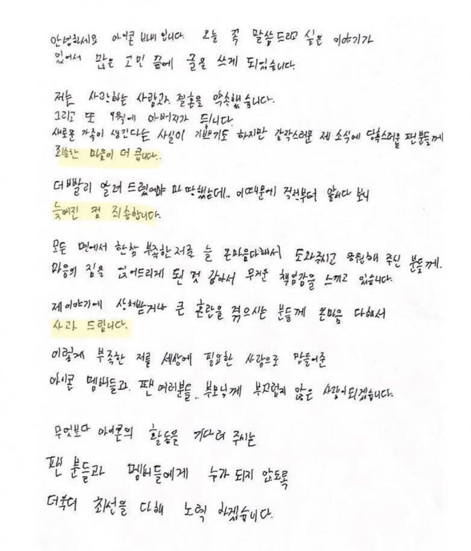 iKON üyesi Bobby, gelecek ay bir çocuk beklediğini açıklayan el yazısıyla yazılmış bir mektup yayınlayınca hayranlarını ve tüm netizenleri şok etti. Hayranlarının ve netizenlerinin çoğu bu habere şaşırdı, ancak çoğunluğu haberi kabul etti ve onu tebrik etti.