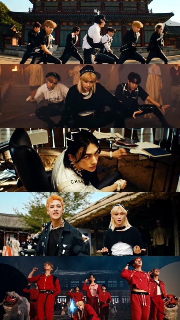 23 Ağustos’ta yayımlanan “THUNDEROUS” adlı başlık şarkılarının müzik videosu geleneksel bir mekan atmosferi içerirken Stray Kids üyeleri, geleneksel motifleri modern materyaller ile harmanladığı dinamik ve özgür ruhlu bir görüntü çiziyor. Zamanı ve mekanı aşan müzik videosu aynı zamanda üyelerin çeşitli karakterlere dönüştüğü, pungmulnori (davul çalmayı, dans etmeyi ve şarkı söylemeyi içeren bir Kore Halk Müziği geleneği), bukcheong (Kore’ye dair geleneksel oyun. Pukchong, Hamgyeongnam-do’da ay takvimine göre her yeni yılın 15. gününde oynanır ve aslan maskesi ile dans etmeyi içerir. Kökenleri, aslanların kötü ruhları geri çevirme ve barış getirme gücüne sahip olduğuna dair halk inancına dayanır) ve animasyon efektleri gibi benzersiz görselliğin kullanıldığı eğlenceli bir müzik videosu. Şarkının Korece adı “Sorikkun” ise genellikle pansori gibi geleneksel Kore müziğinin şarkıcılarına atıfta bulunmak için kullanılır.