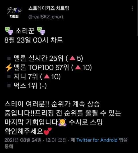 Bu kez, Melon Top 100’de 57. ve gerçek zamanlı listelerde 25. oldular ㄷ