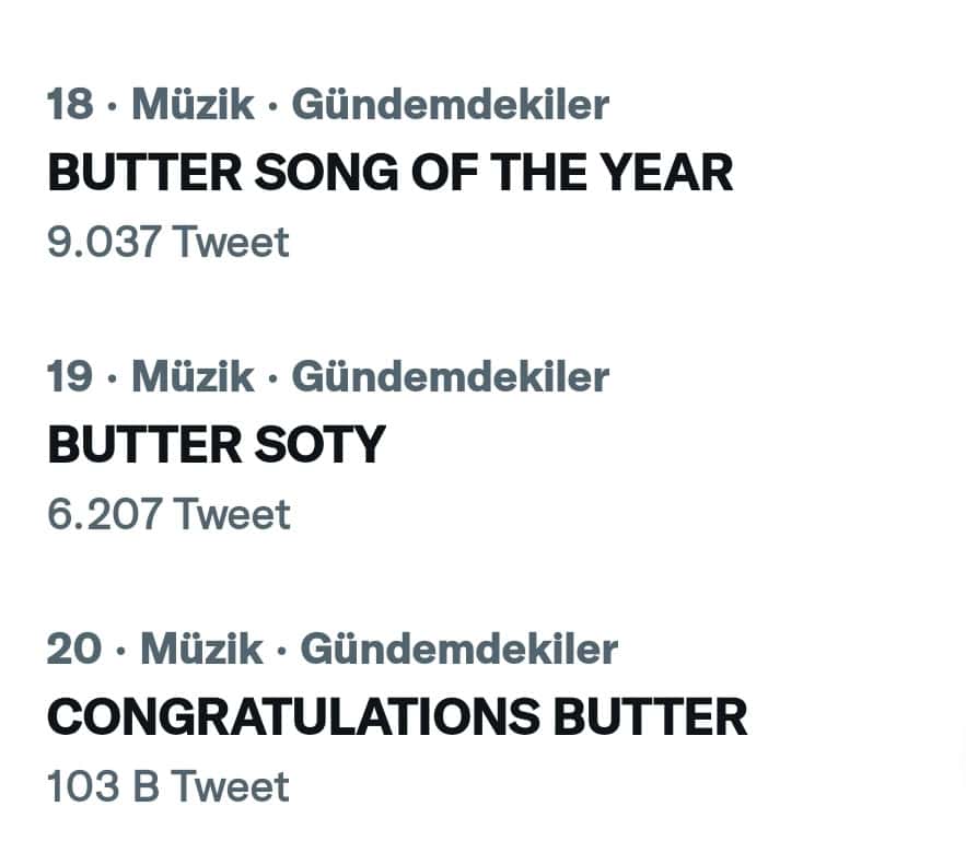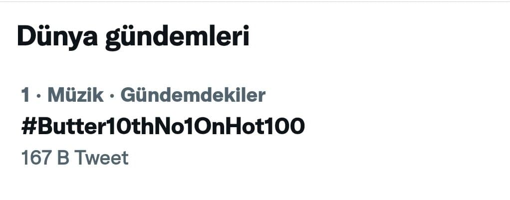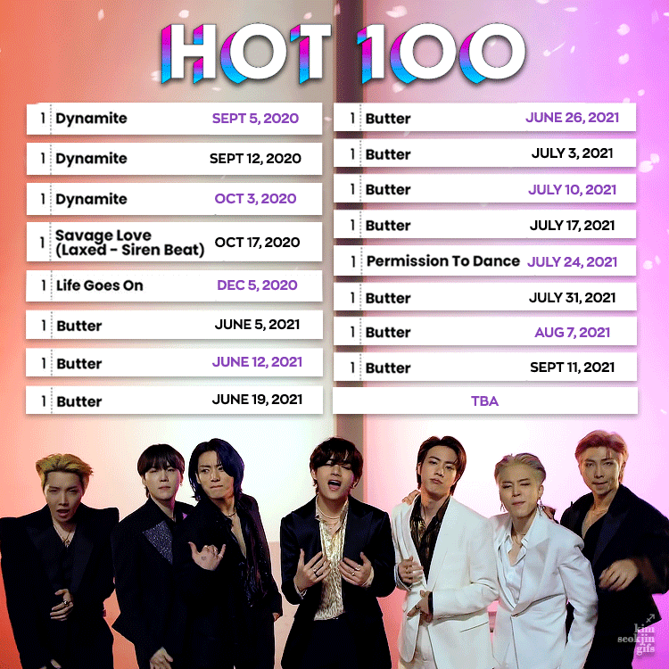 7 Eylül’de Billboard, BTS‘in hit şarkısı “Butter”ın ünlü Hot 100 listesinde (Amerika Birleşik Devletleri’ndeki en popüler şarkıların haftalık sıralaması) 1 numaraya döndüğünü duyurdu.