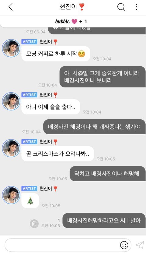 6. [+80, -3] Ara verdiği zaman 4 ay boyunca tek bir şeyde görünmedi. Geri geldikten sonra da linç yememek için çok dikkatli davranıyor, yani ana ekranına bile değil, kilit ekranına kız arkadaşının resmini koyacak öyle mi? ㅋㅋㅋ Ne tür bir idol bunu yapar?.. Çok az kişi buna inandı ama bu yaygarayı çıkaran tek bir kişi, Bubble görüntülerini manipüle ederek açıklama istedi. Artık bunlara alışmalıyım diye düşünüyordum ama bu kez cidden haddi aştılar ve bu kez [söylentiler] çok saçmaydı. İdollük aşırı zor bir iş