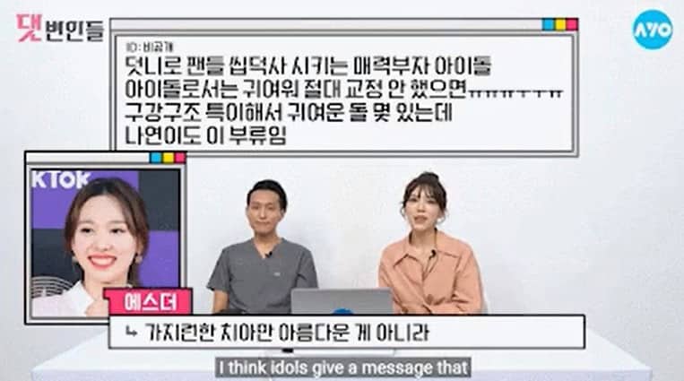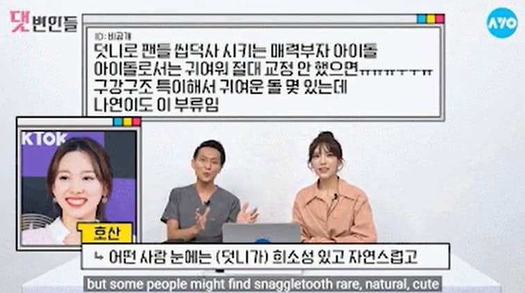Diş doktoru Park Hosan Nayeon’un diş yapısının mükemmel olmadığını ama ona ayrı bir güzellik kattığını ve bu yüzden dişlerini yaptırmaya giden insanların olduğunu açıkladı