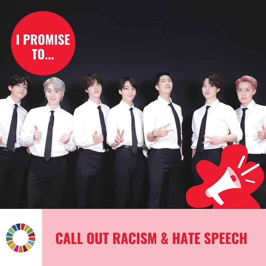 Choose your promise to help achieve the #GlobalGoals. Let’s do this together💪#CallOutRacismHateSpeech #BTS pic.twitter.com/uSxuicLyXR— BTS_official (@bts_bighit) September 18, 2021