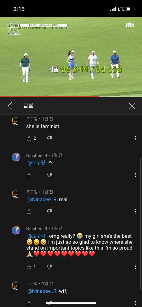 [Ç/N:] Lee Sungkyung, geçenlerde JTBC’nin yeni programı “SeriMoney Club”da söyledikleri yüzünden ‘tartışma’lara yol açtı. Programda golf oynarlarken Kim Jong Kook, acemi olmak anlamında “başını tak” dedi. Bu ifade Korecede fahişe olarak (ilk işini) yapmak, başlamak gibi anlamlara da geliyor. Bu nedenle Lee Sungkyung, bu ifadenin ikinci anlamını öğrendikten sonra artık kullanmadığını söyledi; yan anlamından dolayı bu ifadenin onu rahatsız ettiğini söylemeye çalıştı. Kim Jong Kook, sadece ‘golfte acemi’ anlamını bildiğini, diğer anlamını bilmediğini açıkladı ve Lee Sungkyung da alternatif başka bir kelime önerdi. Bunun ardından çevrim içi platformlardaki feminist karşıtı erkekler, Lee Sungkyung’u feminist olmakla ‘suçladı’.]