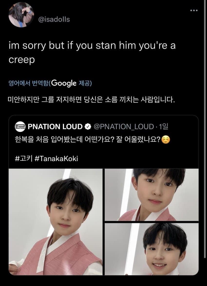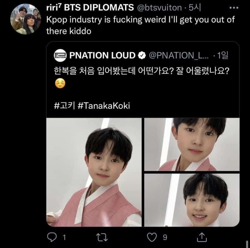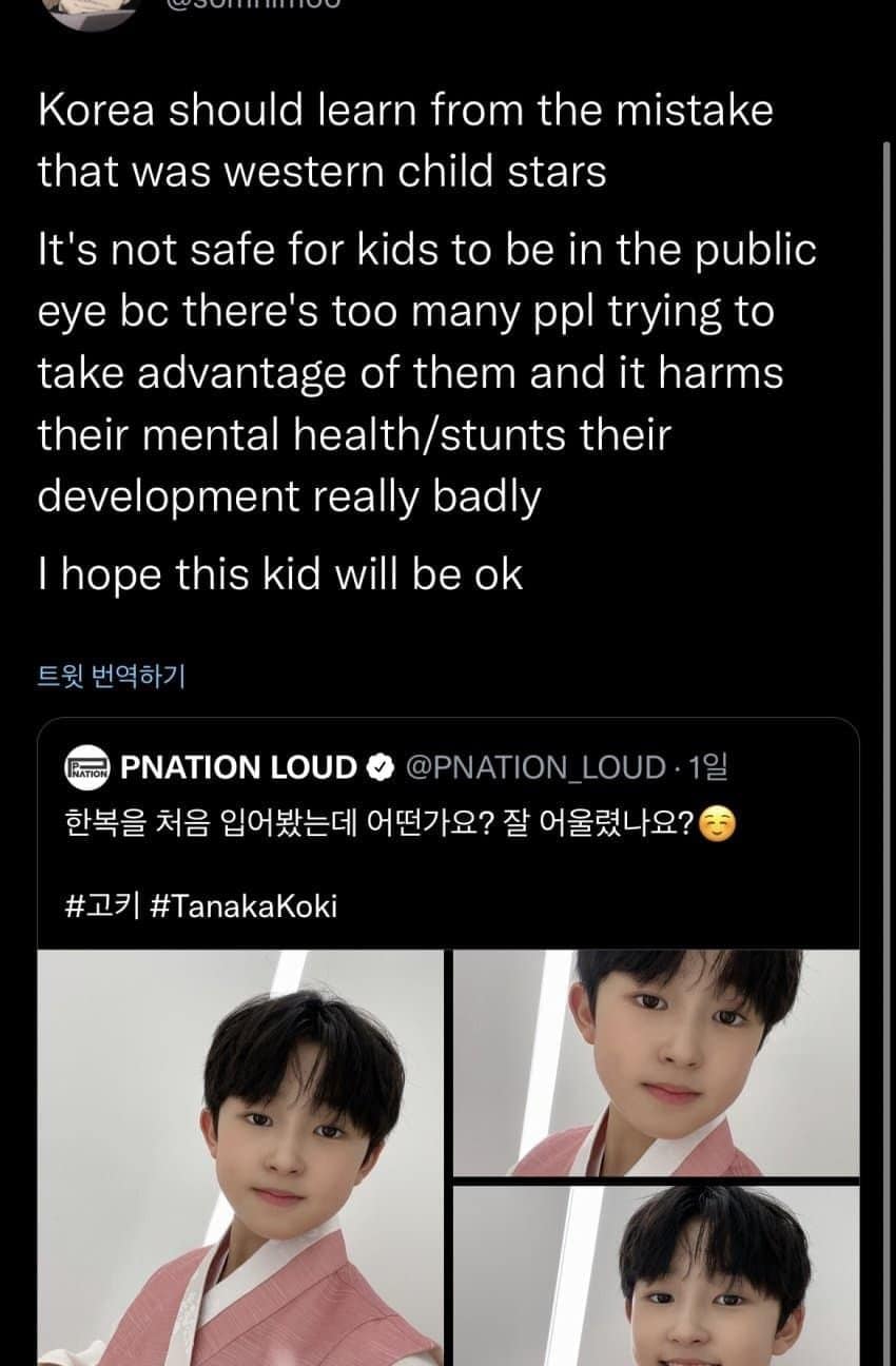 [K-pop batıdaki yıldız çocukların hatalarından ders almalı. Çocukların gözler önünde olması güvenli değil çünkü ondan yararlanmaya çalışan bir dolu insan var, ayrıca mental sağlıklarına zarar verir ve gelişimini gerçekten kötü şekilde etkiler. Umarım bu çocuk iyi olur.]
