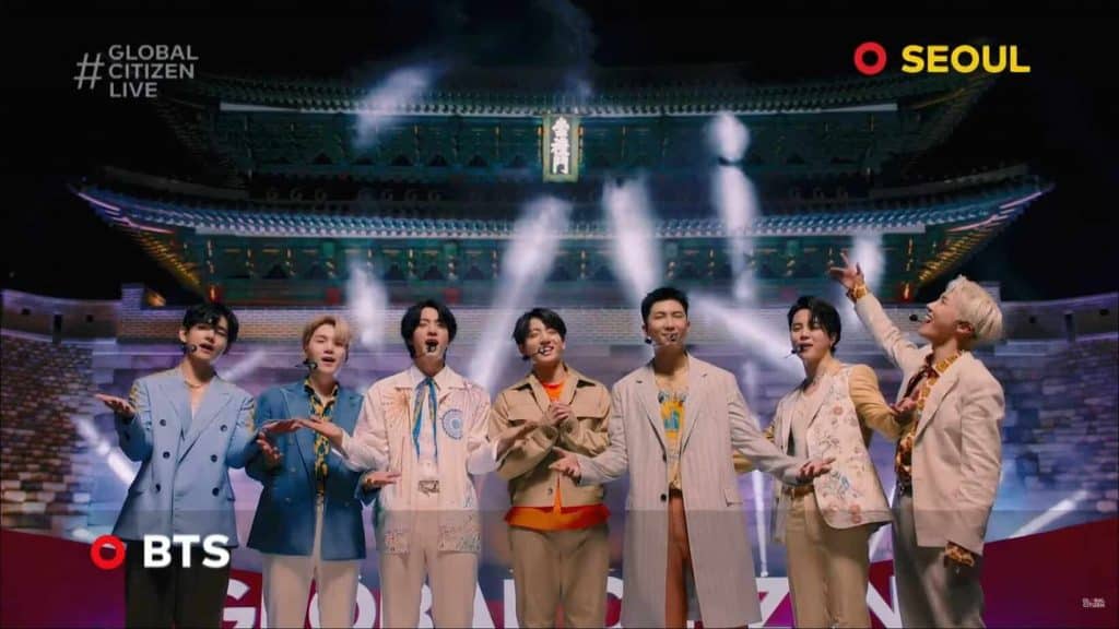 BTS, Global Citizen Live konserindeki “Permission to Dance” performansını, Joseon Hanedanlığı‘ndaki Seul Kale Duvarı‘nda yer alan 8 geçitten biri olan Namdaemun, resmi adıyla Sungnyemun‘da gerçekleştirdi.