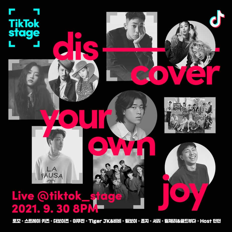 23 Eylül’de TikTok Korea, yeni bir “TikTok Stage” çevrim içi konseri gerçekleştireceklerini ve etkinliğin bir parçası olacak sanatçıları resmi Twitter hesabından duyurdu. Bu ayın konsepti “Discover Your Own Joy” olacak.