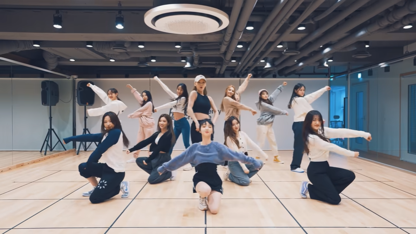 Pratik videosunda LOONA üyeleri dans hareketlerini eğlenceli bir şekilde sergiliyor.
