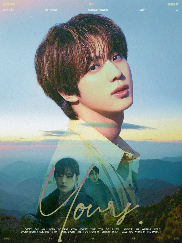 7 Kasım saat 12:00’de Jin, Jun Ji Hyun ve Joo Ji Hoon’un yeni draması Jirisan‘ın müziklerine merakla beklenen katkısı Yours solo parçasını yayımladı. Yayımlanmasından hemen sonra şarkı, dünyanın birçok ülkesinin ve bölgesinin iTunes listelerinde zirveye yükseldi.