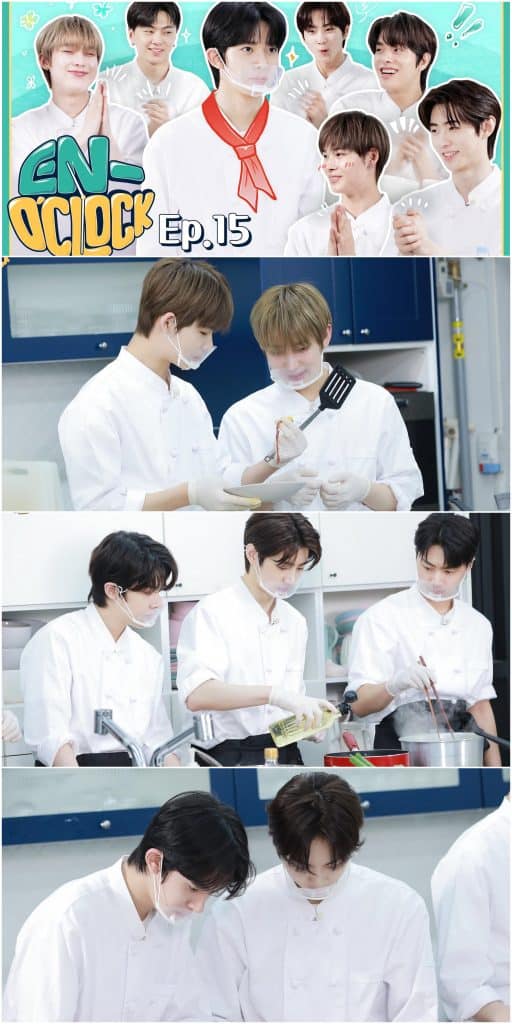 EN-O’CLOCK’un 14 ve 15. bölümlerinde üyeler, havalı şef kıyafetlerini giydiler ve profesyonel bir şefin rehberliğinde mutfakta eğlenceli dakikalar geçirdiler.