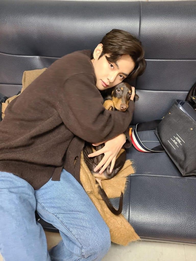 Kang Hyung Wook‘un da belirttiği gibi V‘nin, köpeklere karşı samimi sevgisi ve nezaketi, her zaman görülebilir.