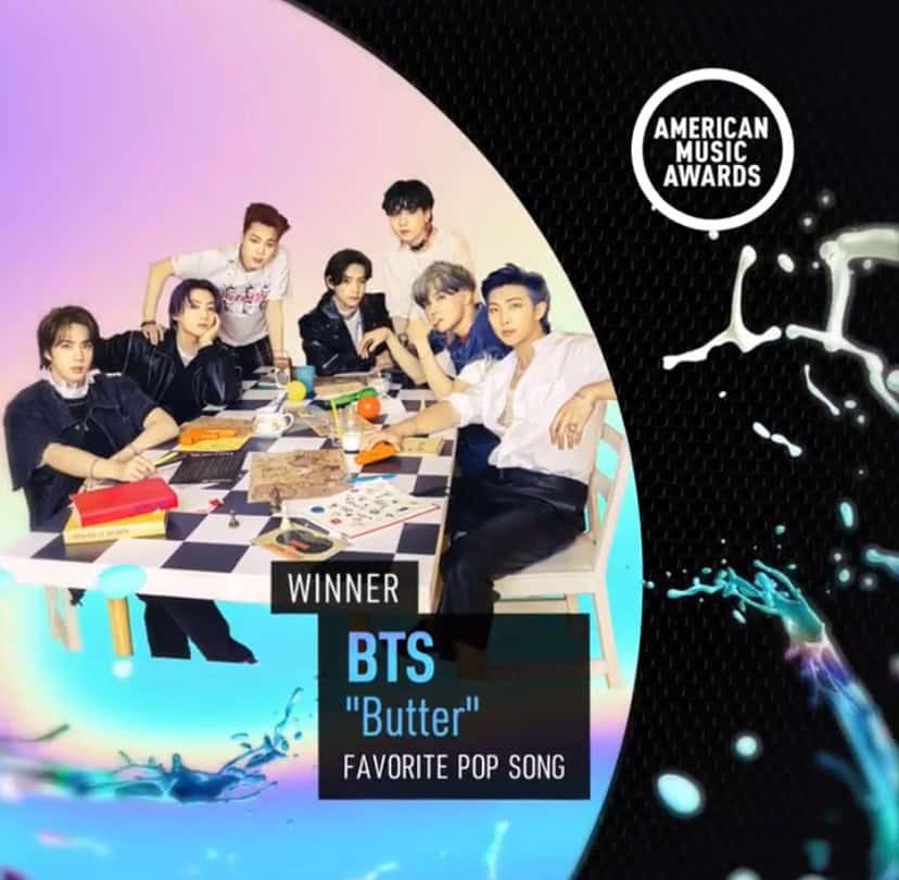 You BUTTER believe it! @BTS_twt‘s “Butter” is your #AMAs Favorite Pop Song! 🎉 #BTSxAMAs pic.twitter.com/v6OsYs9Bf9