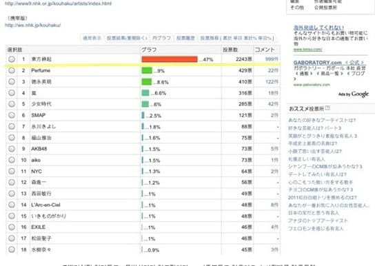 TVXQ’nun, SMS oylamasını Japon sanatçılara karşı bile ezici bir farkla kazandığını gösteren grafik