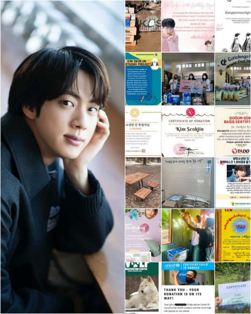 Tayland hayranları ise, Jin‘in doğum gününü kutlamak için Tayland‘daki 11 ‘Fil’ hayvanına yardım etmek için para bağışladığını duyurdu.