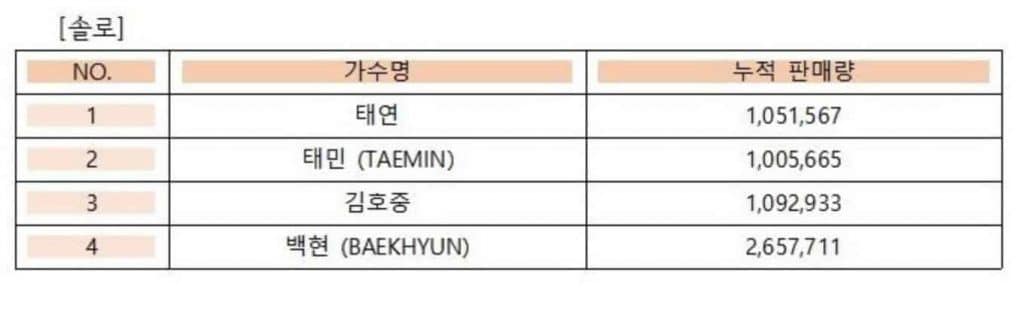 Taemin, 2011’den beri en az 1 milyon albüm satışı yapan 4 K-Pop solistinden (Taeyeon, Kim Ho Joong, Baekhyun) biri oldu.