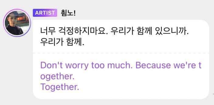15 Ocak’ta Minho, Bubble üzerinden bir paylaşım yaparak Taemin için endişelenen hayranların kalbini rahatlattı.