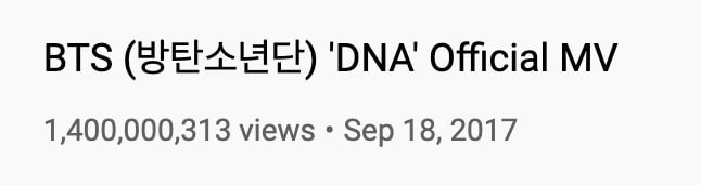 18 Eylül 2017’de saat 12.00’de yayımlanan müzik videosunun bu kilometre taşına ulaşması, yaklaşık olarak 4 yıl, 4 ay ve 2 gün sürdü. Ayrıca DNA; BTS‘in, 24 Kasım 2021’de Boy With Luv‘dan bu yana 1.4 milyar izlenmeye ulaşan 2. müzik videosu. Böylece BTS, 2 müzik videosu ile bu başarıya ulaşan tek Koreli erkek grubu oldu.