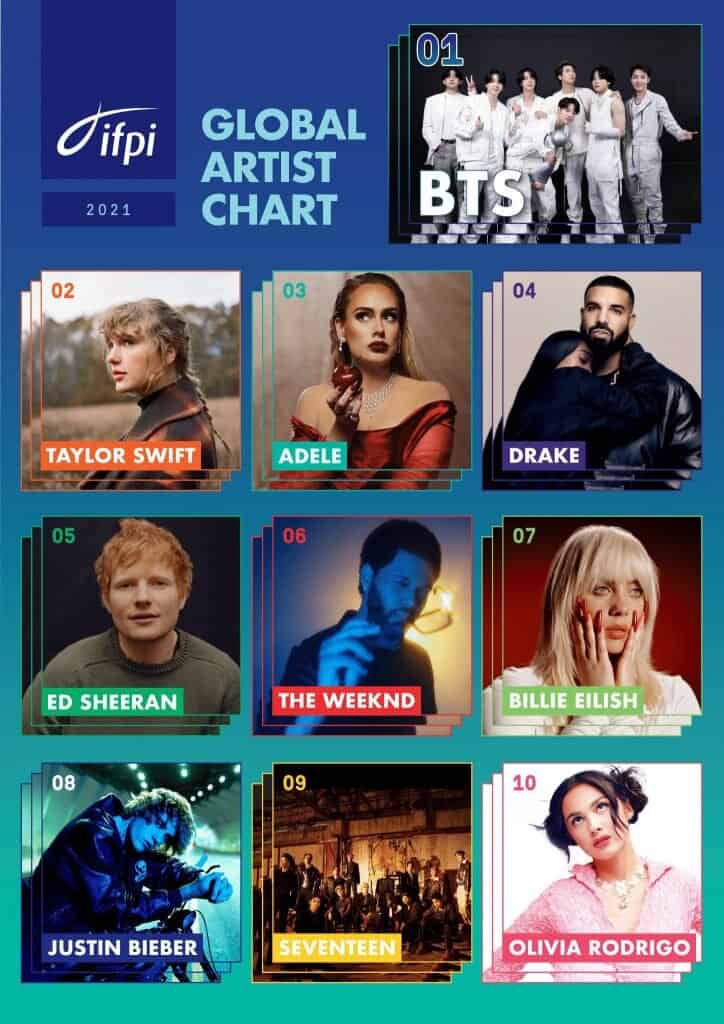 Os 10 maiores artistas de 2021 em vendas mundiais (IFPI) 🌎
