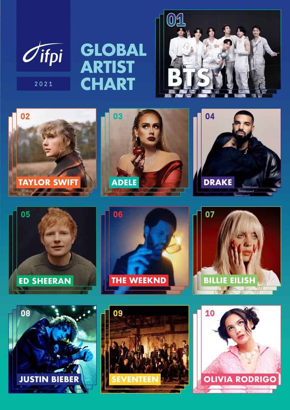 IFPI Global Sanatçı Listesi = Fiziksel albüm + İndirmeler + Akış