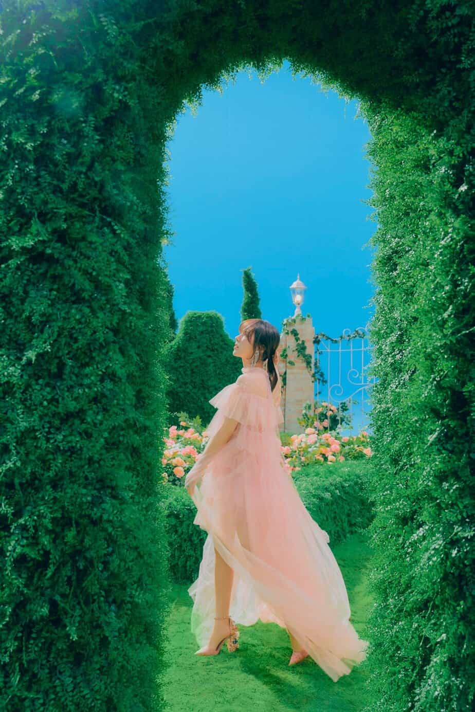 Paylaşılan fotoğraflarda Red Velvet üyeleri bir bahar bahçesindeki prensesler gibi görünüyor.