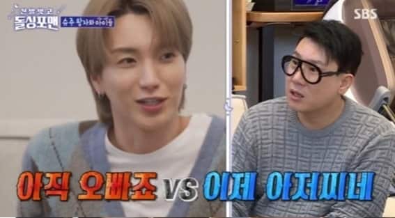 Adamlar daha sonra Leeteuk‘a bir “ahjusshi” mi yoksa bir “oppa” mı olduğunu belirlemek için bir dizi “test” sorusu sormaya devam ettiler. İlk olarak Kim Jun Ho, “Esnediğinde gürültü yapar mısın?” diye sordu. Daha sonra “Kendinizle konuşurken şarkı mı söylüyorsunuz yoksa bir melodi mırıldanıyor musunuz?” diye bir soru yöneltti.