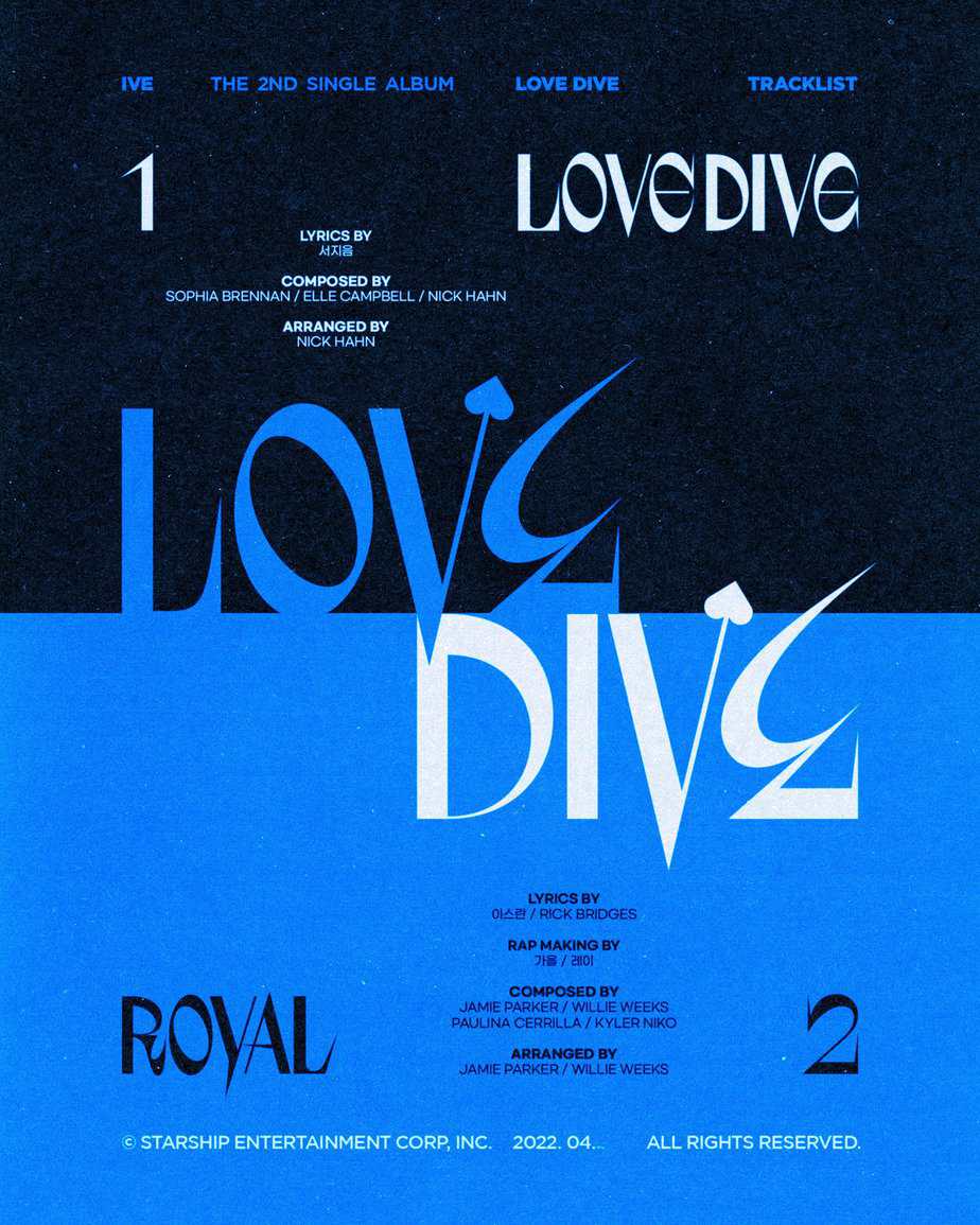 Tekli albüm, başlık şarkısı “LOVE DIVE” ve b-side şarkı “ROYAL” ile birlikte 2 şarkıdan oluşuyor. Ayrıca üyelerden Gaeul ve Rei, albümün b-side şarkısı “ROYAL“ın rap partlarının yapımında yer alıyor.