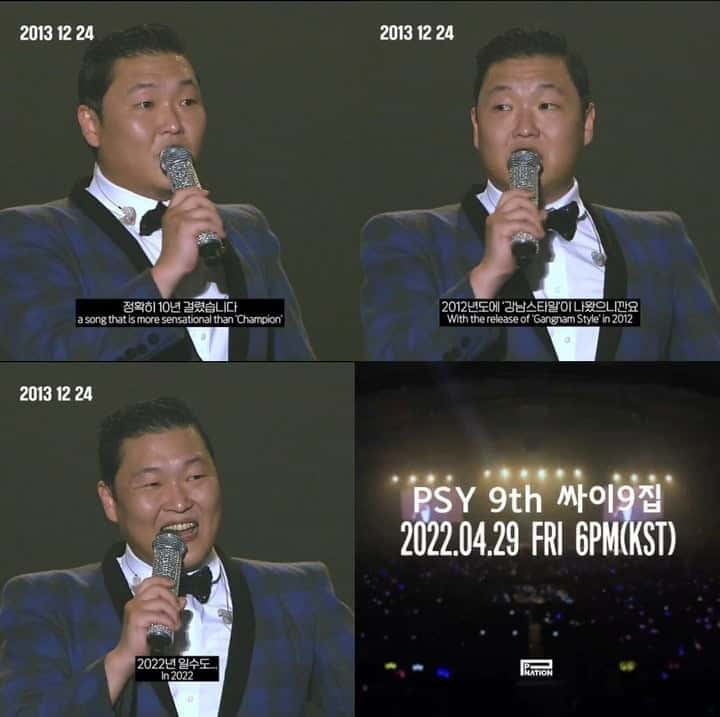 12 Nisan’da PSY, sosyal medya hesaplarından 29 Nisan‘da Türkiye saatiyle 12.00’de çıkacak olan yeni albümü PSY 9th hakkında resmi bir açıklama yaptı. Ayrıca, 2022’de hit bir şarkı çıkarabileceğini öngördüğü 2013’teki konserinden bir video yükledi.