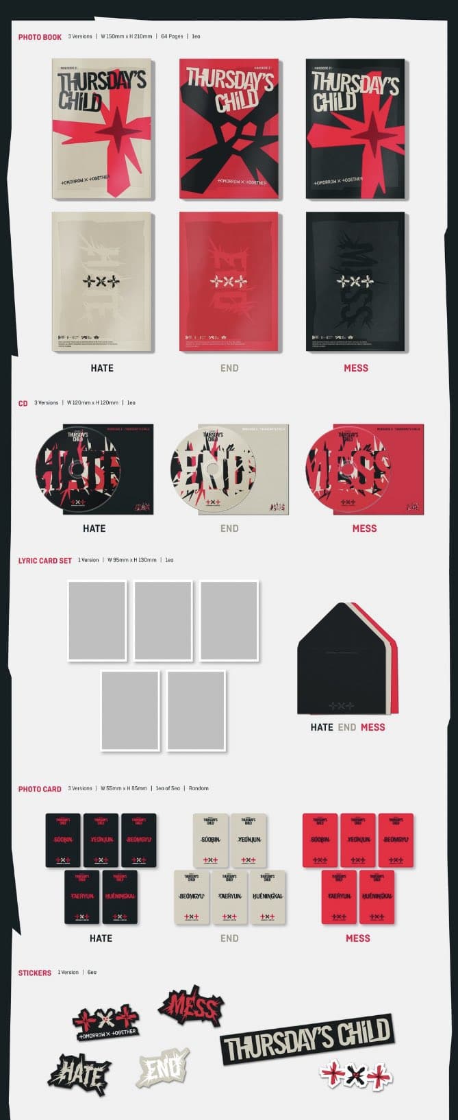 Ön siparişleri başlayan ve 9 Mayıs‘ta yayımlanacak olan minisode 2: Thursday’s Child albümü; MESS, END ve HATE adında 3 versiyondan oluşuyor.