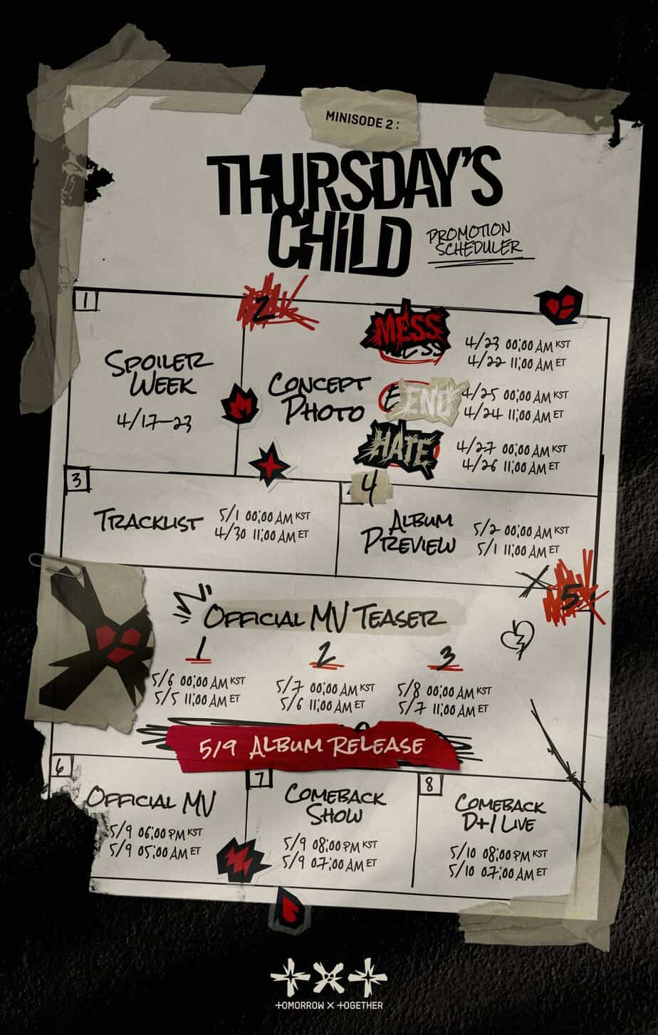 13 Nisan’da BIGHIT MUSIC, TXT‘nin 4. mini albümleri minisode 2: Thursday’s Child ile 9 Mayıs‘ta Türkiye saatiyle 12.00‘de geri döneceğini resmen duyurdu.
