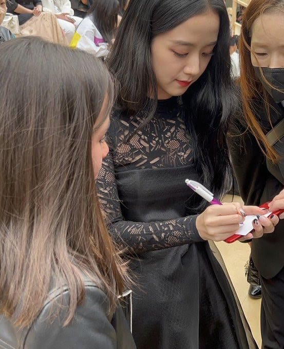 Etkinlik özel ve halka kapalıyken, şanslı bir hayran şova katılmayı ve Jisoo ile tanışmayı başardı. Hatta bir imza bile aldı.