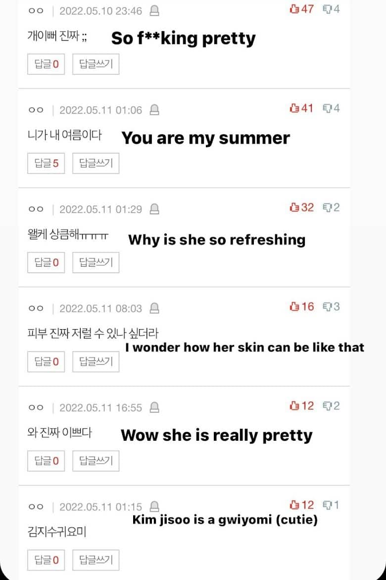 Gönderiyi gören netizenlerde Jisoo’nun güzelliğini öven yorumlar yaptı.
